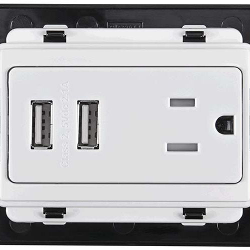 Toma de corriente 2P+T con 2 cargadores USB 2.1 A.